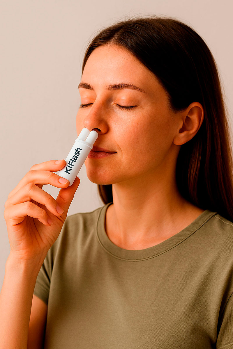 ✅ A diferencia de perfumes o roll-ons —que suelen llevar un 80 % de alcohol y están pensados ​​para aplicarse sobre la piel— , KiFlash Stick no contiene alcohol y ha sido creado exclusivamente para ser inhalado. Esto permite que cada molécula actúe sin diluciones ni interferencias, viajando directamente a través de la nariz hacia el sistema nervioso, donde estimula áreas clave del estado mental y emocional.
